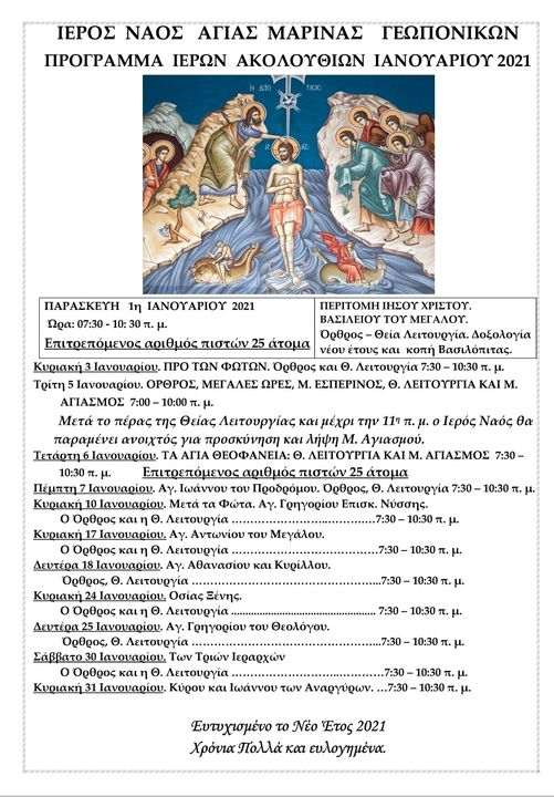 ΙΕΡΟΣ ΝΑΟΣ ΑΓΙΑΣ ΜΑΡΙΝΑΣ ΓΕΩΠΟΝΙΚΩΝ ΠΡΟΓΡΑΜΜΑ ΙΕΡΩΝ ΑΚΟΛΟΥΘΙΩΝ